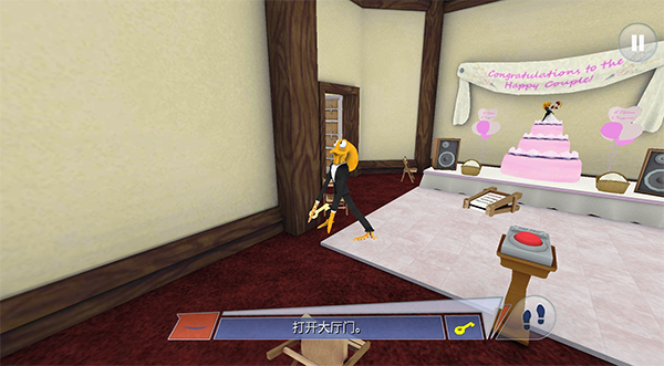 1、游戏开始时,玩家将扮演一位假扮成人类的章鱼新郎,婚礼当天因衣着不整,需要控制角色完成穿戴过程,正式开启奶爸生活。
