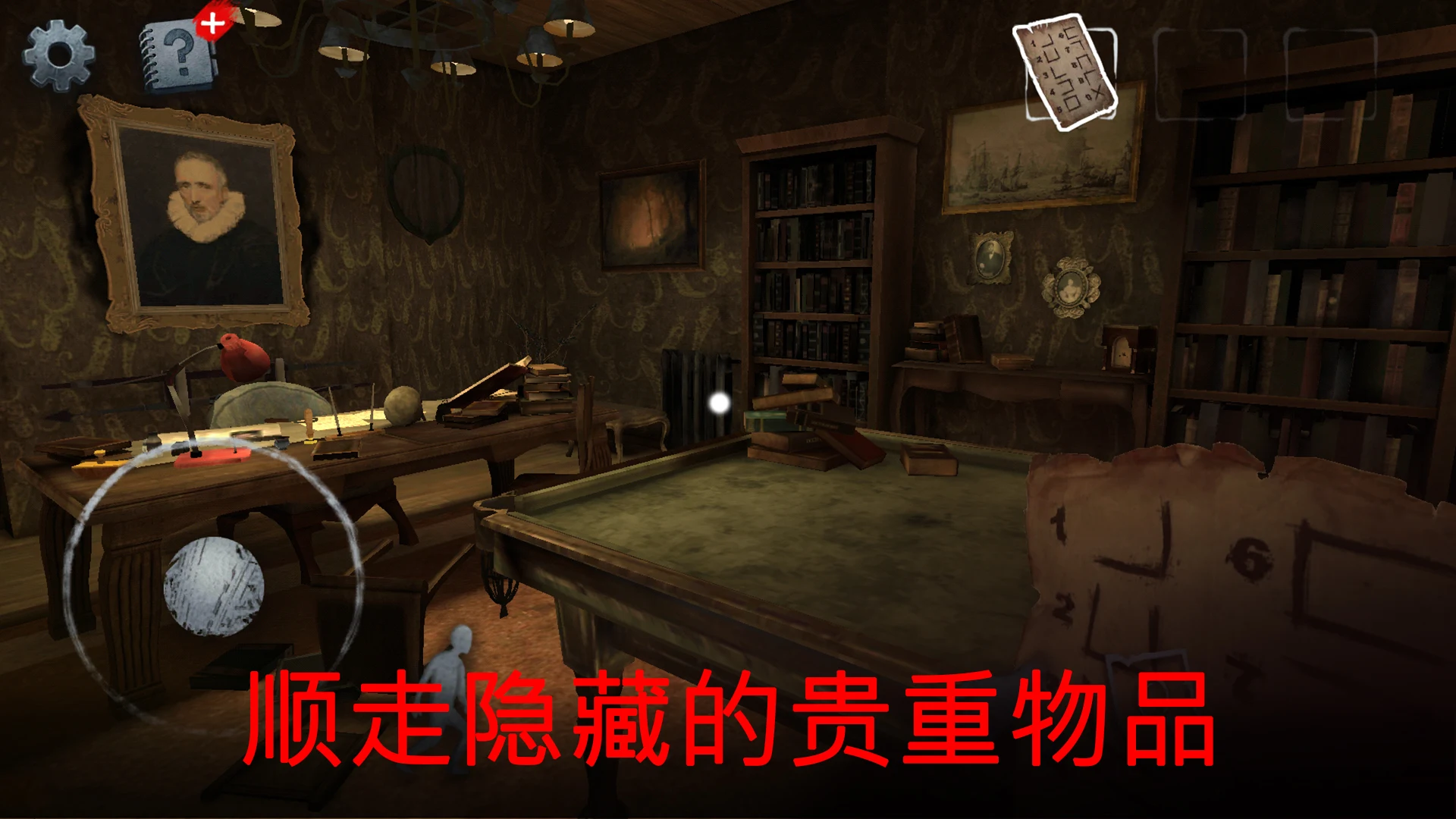 观察要点:以全景视角探寻古宅,留意墙面符号、家具布置及地板异状,找寻隐藏的机关或秘密门。
