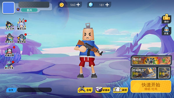 启动游戏后,可选择“吃鸡模式”或“爆破战模式”进入战局。