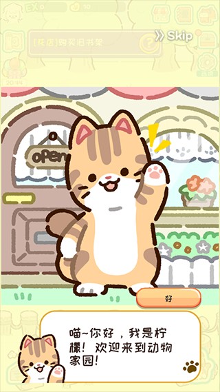 1、当玩家第一次进入动物家园时,会有一只叫柠檬的猫咪向导来协助玩家熟悉游戏的操作方式和玩法内容。