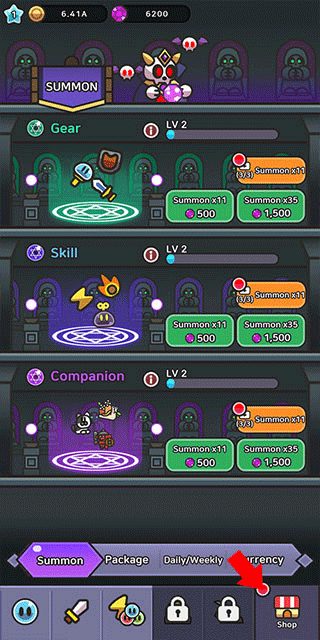 5、玩家也能在商店里花费钻石召唤出强力的装备、武器、伙伴之类的物品。