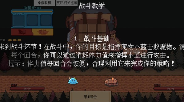 3、进入战斗环节后,你需要操控小蓝与怪物展开对决。每个回合中,你可以消耗相应的体力值,让小蓝发起攻击或是执行战术类操作。成功击败怪物后,不仅能获取奖励,还能帮助小蓝提升自身能力。