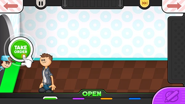 1、进入游戏后,我们先点击【TAKE ORDER】为顾客点单,顾客就会提供订单。