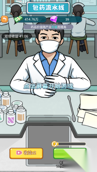 3、开药与包药:点击“开药”可配制药品,药品产值随着产业升级会持续上升;包药后记得及时领取收益。