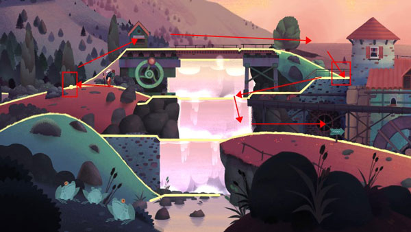 3、富有创意的地形解谜机制:玩家要拖动不同图层的地形,构建出能让老人前进的路径,操作简便且充满巧思。