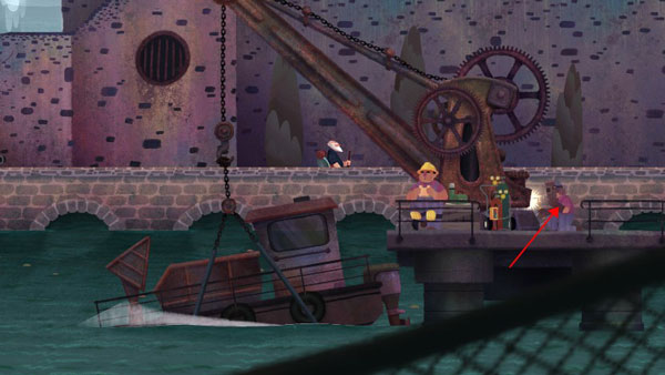 拖动桥梁连接通过,点击维修工人触发回忆。
