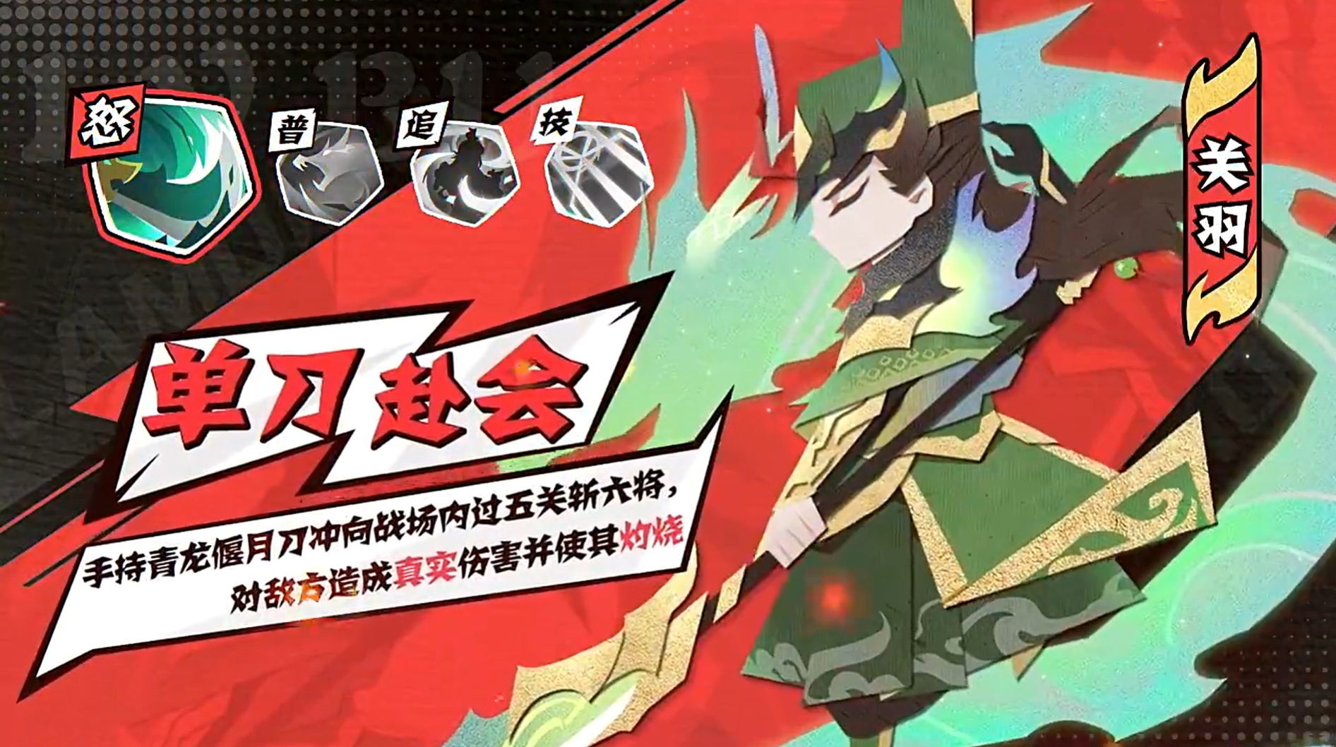 1、关羽手持青龙偃月刀,气势威严,其英勇的形象有着极强的视觉震撼力。