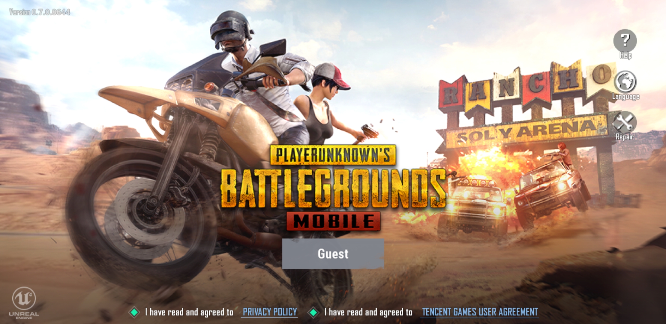 1、首先打开已安装好的PUBG体验服,点击游戏界面的【Guest】按钮。