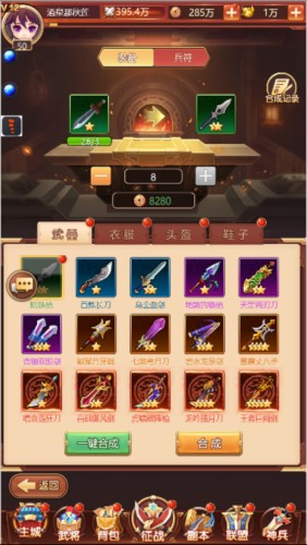 3、多余的【装备】可以拿到【铁匠铺】去合成,从而得到品质更高的【装备】。