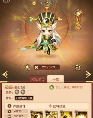 c.升星:进行升星操作,能够提高武将的等级上限,增加其通过升级所获取的基础属性,同时还可以解锁武将自身的技能,以及解锁着装、兵符、兵法技等内容,并且能提升武将的星级品质!