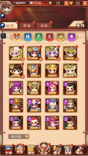 6、前期不必急于培养特定阵型,先用手头已有的武将过渡提升战力即可;等游戏进入中期阶段,再结合当时的游戏环境,着手养成自己喜欢的武将和阵容。