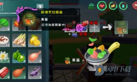 6这样操作后,果酱便制作完成了,它能让食物属性提升20点,这比单独食用草莓或者蓝莓带来的属性增益要显著得多。在研究过对应的菜谱之后,还可以借助“快速烹饪”的功能来成批地制作果酱。