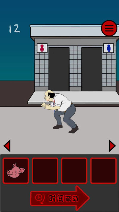 3、上完厕所后,变态正好跟上,此时在身后放置第二个“猪头”;