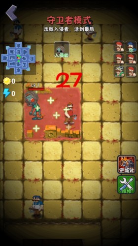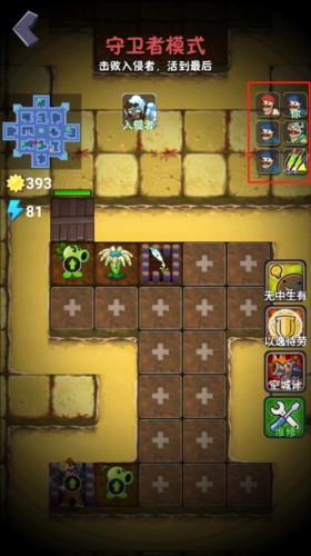 3、然后就进入到守卫者模式,玩家需要击败入侵者,也就是僵尸,然后活到最后;
