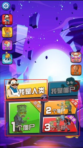 1、进入游戏后可以选择是人类或者僵尸,在这里,小编选的是人类,然后选择下方的难易程度,分别有简单、困难、超难三种;