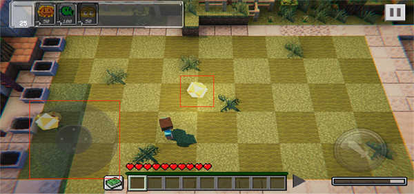 通过控制角色滑动摇杆移动,拾取散落在场地中的阳光资源。