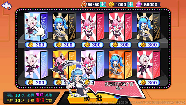 进入“猫咪商城”,开启角色盲盒,获取新角色来上阵作战。
