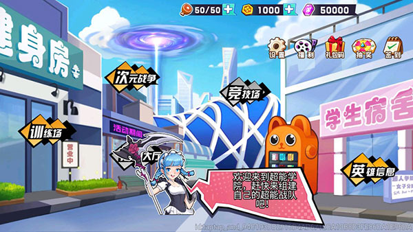 完成游戏安装后,首次进入游戏界面,就能看到“次元战争”“训练场”“竞技场”等核心玩法板块。