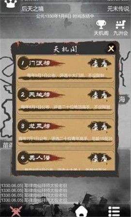 1、四季心法(由春之心法、夏之心法、秋之心法、冬之心法组成,四者全部大成后自动融合):其中,春之心法对应荆楚地域的洞庭山庄;夏之心法对应中原地域的渤海山庄;秋之心法对应辽东地域的长白山庄;冬之心法对应关陇地域的望川山庄。
