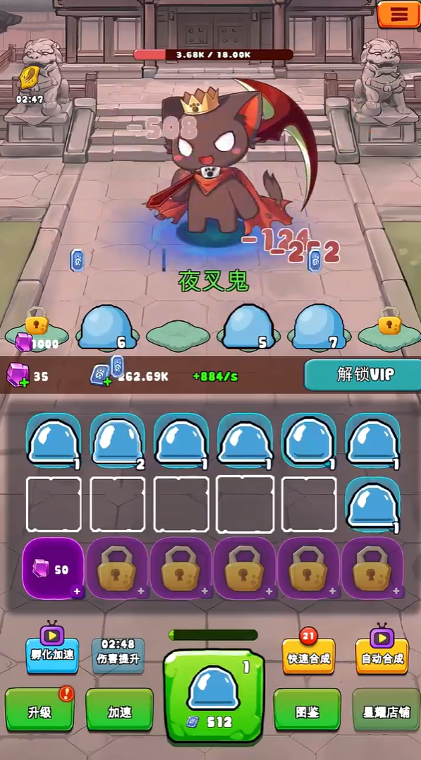 3、将相同等级的史莱姆进行合并,可生成更高阶形态,提升整体输出与能力值。