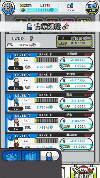 5、升级扭蛋机或进行市民研修,可进一步提升收入。