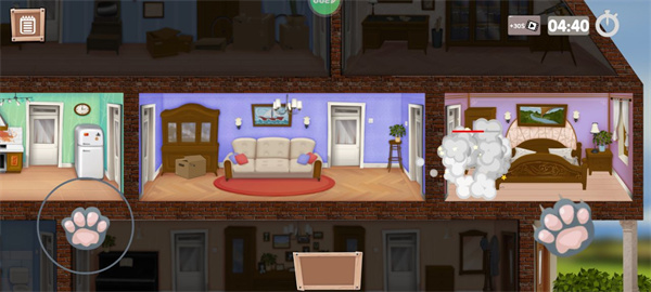 2、化身“山姆猫”,潜入目标家庭,借助道具制造声响、损坏家具等,以完成整蛊任务;