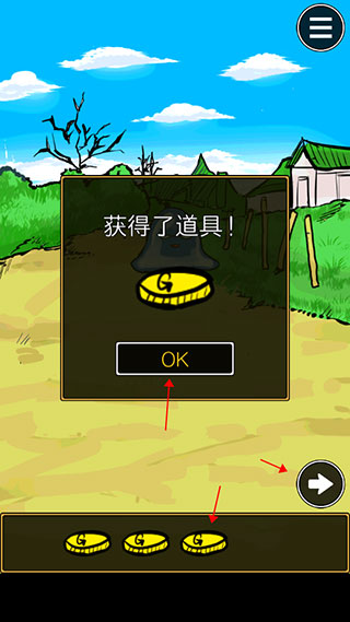 3、收集完金币后,点击屏幕右侧的箭头,即可进入下一场景。
