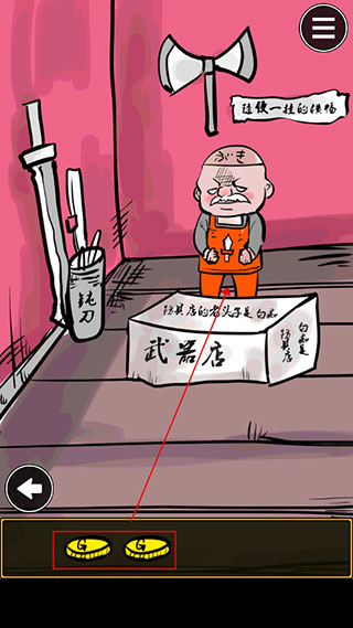 4、在武器商店里,把刚得到的四个金币都交给老板,让他帮忙打造圣剑。