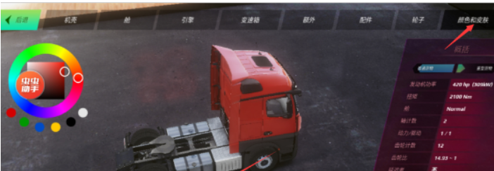 1、卡车自定义功能:涂装库,支持对车辆外观、轮胎样式、车灯效果等进行自由修改与调整;