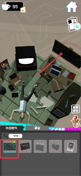4、辅助功能:点击放大镜可快速定位目标物品,借助四向重置按钮能帮助场景复位。