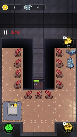 5、积累金币后,优先升级炮台和房门提高防御力。