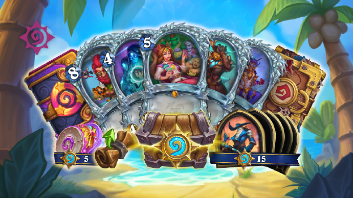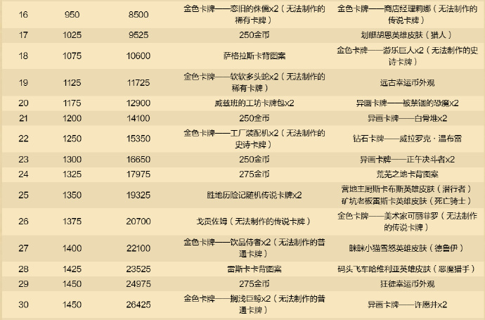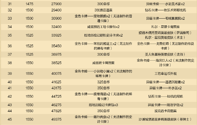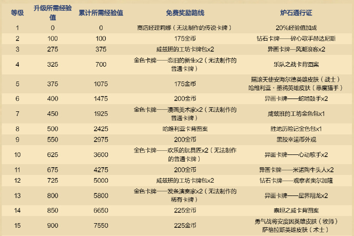 免费路线里包含的内容如下:2张传说卡牌、8包威兹班的工坊卡牌包、3包胜地历险记卡牌包、2张胜地历险记随机史诗卡牌、2张胜地历险记随机传说卡牌、5款卡牌背面图案、3张旅店通票、28张国服玩家此前错过的炉石通行证中的金色卡牌,还有金币。