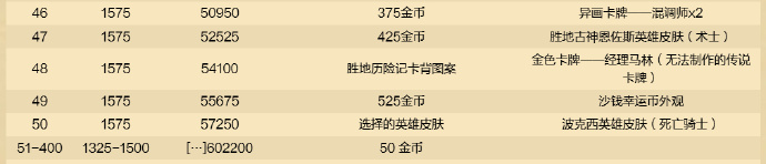 另外付费路线的售价依旧保持128元(符文石),包含的内容有:“威兹班的工坊”和“胜地历险记”金色包、5张钻石卡牌、6张金色卡牌、30张异画卡牌、15个传统对战英雄皮肤、5款卡牌背面图案,还有5款幸运币外观。