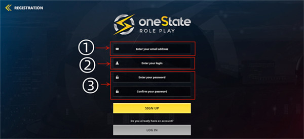 请依次在指定行填写对应信息:首行录入你的邮箱地址,第二行填写登录账号,第三行设置密码,第四行再次输入以确认密码(注意密码需包含至少一个字母和一组数字)。