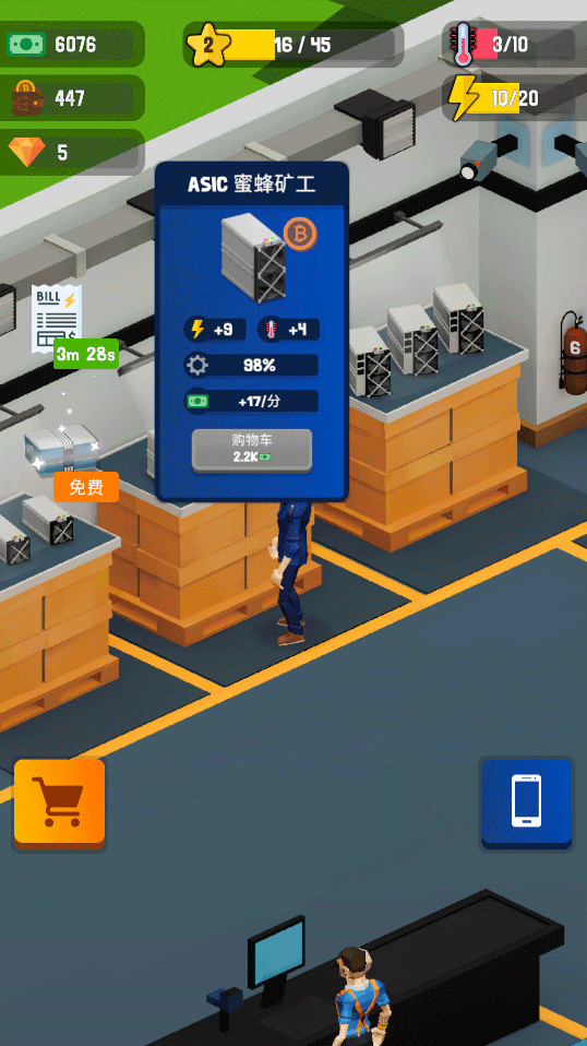 2在这款模拟经营游戏中,你将扮演一位专注于虚拟货币开采领域的经营者,通过合理规划设备升级路径、不断精进开采工艺来提升收益效率。游戏的核心玩法需要你持续投入精力进行策略调整,才能推动事业稳步发展——从最初的小型矿场起步,逐步解锁自动化管理系统,最终建立起庞大的产业版图,体验事业版图扩张带来的成就感。