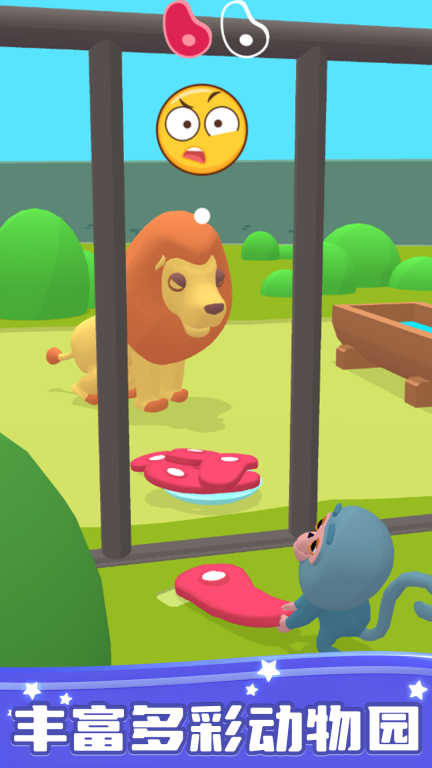 1、玩家可以投喂河马、照顾羊驼,与调皮小猴玩耍。