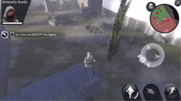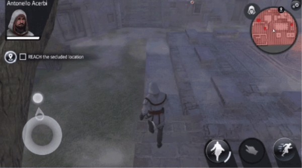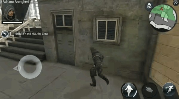 游戏设有两种操控模式:其一为类PC版的点击行走模式,其二是更适配手机操作的双摇杆模式。针对移动端体验进行了优化,攀爬、跳跃等动作均已简化,玩家只需靠近障碍物便能自动触发相应动作;刺杀操作也更为直观,点击敌人头部上方的骷髅图标即可完成刺杀。