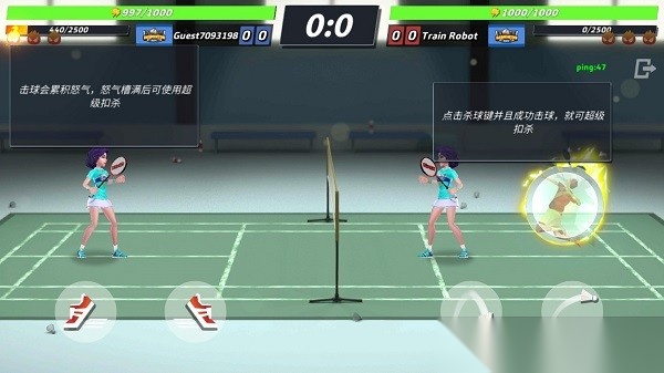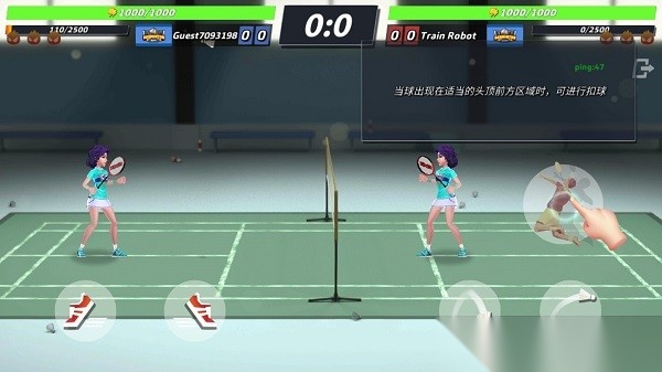 3、当羽毛球出现在头顶前方适当的区域时,玩家可选择扣球,发起强力攻击。