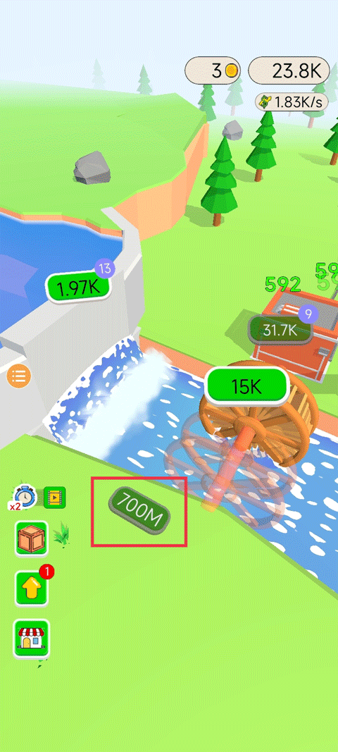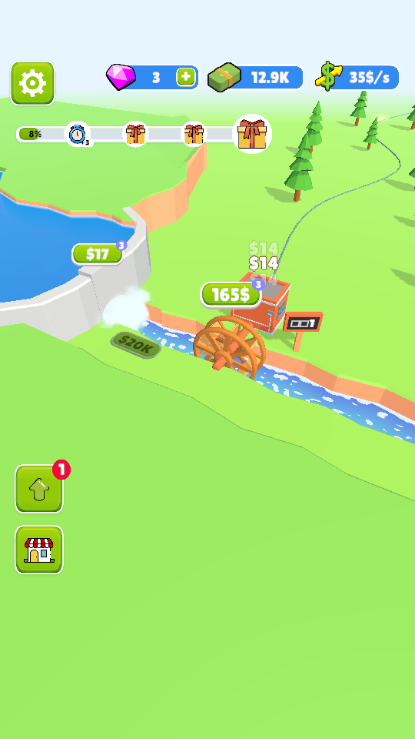 当玩家积累了足够的货币,就能够扩建并购置新的水力发电机,以此提升收益效率。