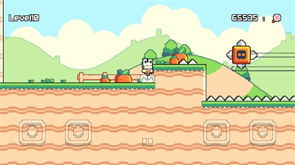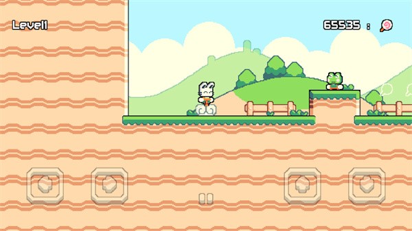 《兔兔大冒险》是一款以清新像素风格构建的横屏冒险游戏,玩家将扮演一只活泼软萌的兔子,开启一段遍布机关陷阱与趣味挑战的冒险之旅。游戏沿用经典横版操作逻辑,左屏操控角色移动方向,右屏负责跳跃与下蹲动作,简单直观的操作设计让新手也能快速上手。游戏内设有大量巧思设计的关卡,难度会随进程逐步升级,让玩家在轻松惬意的氛围中不断精进操作手感。而丰富多样的道具机制、各具特色的关卡场景、诙谐有趣的剧情故事,再搭配上舒适护眼的视觉表现,使得《兔兔大冒险》成为一款兼具休闲乐趣与挑战深度的像素风精品游戏。