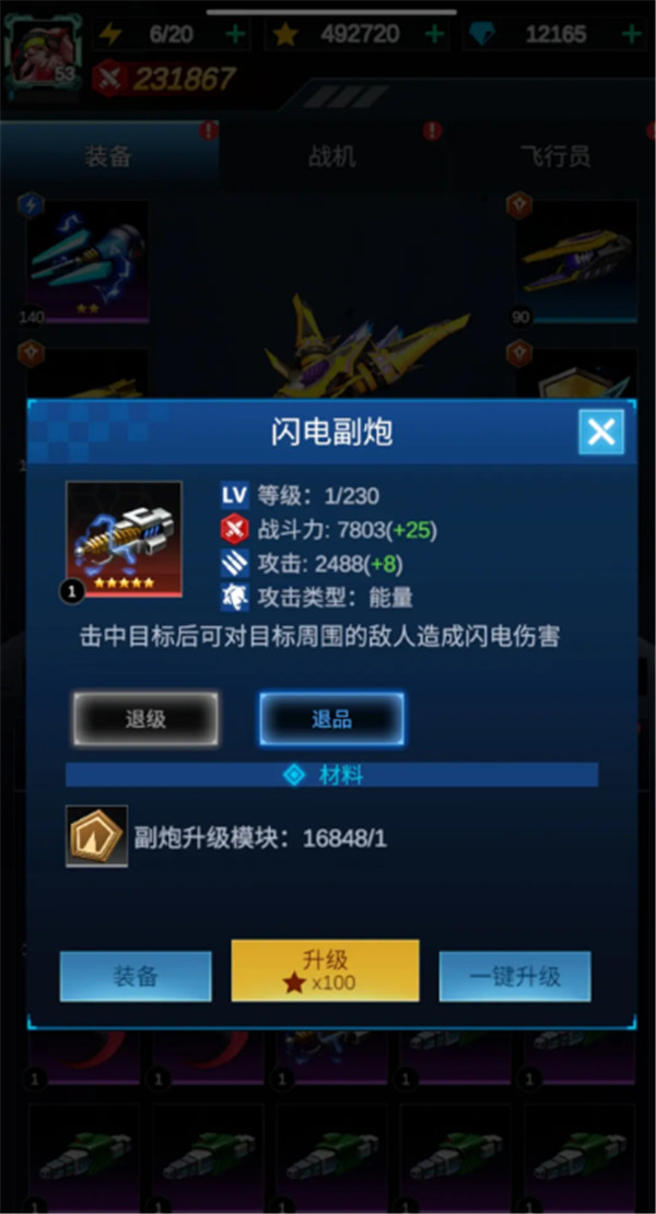 4、选择装备、培养飞行员,提升战机性能,变身泰坦机甲,畅享射击体验。