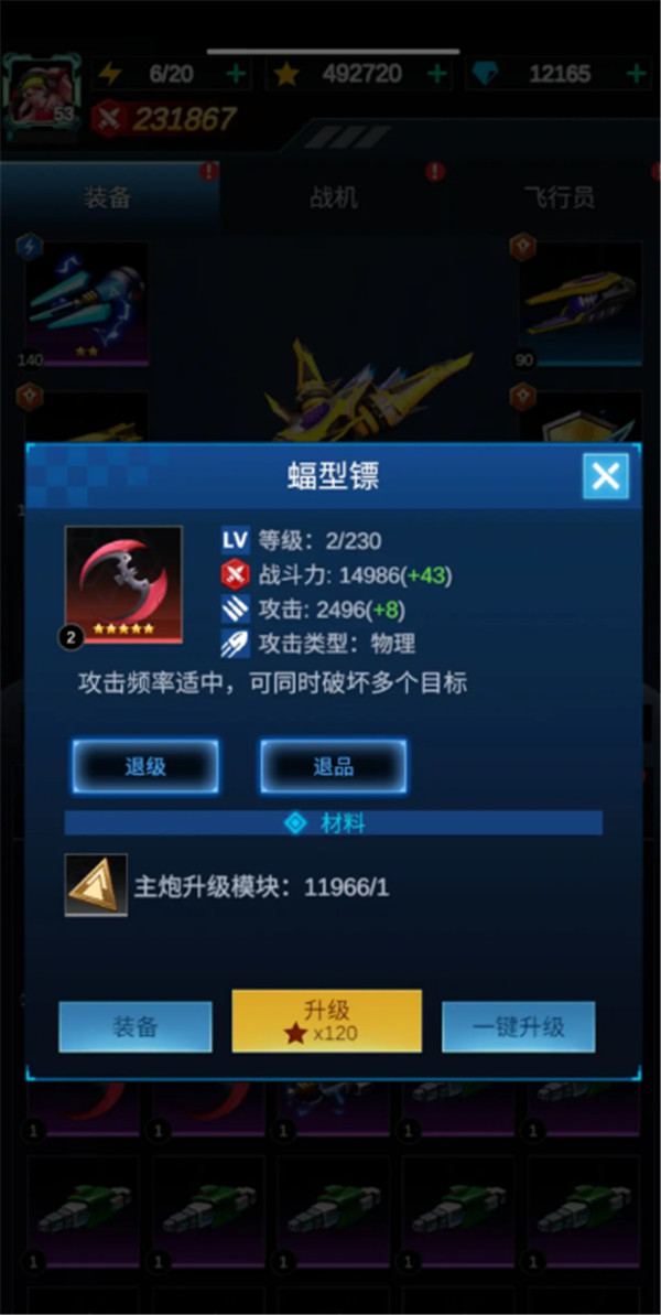 主炮推荐蝠型镖,可自动攻击多个目标,超武后可分裂出大量子弹,是攻打小怪及多炮台boss的利器。