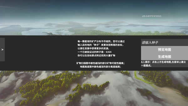 1、刚进入游戏时,所有玩家面对的都是统一的地球村地图,地图上的资源分布是随机生成的。我们需要先点击左上角的生成地图按钮,随后打开卫星地图,通过移动界面来寻找矿物资源;