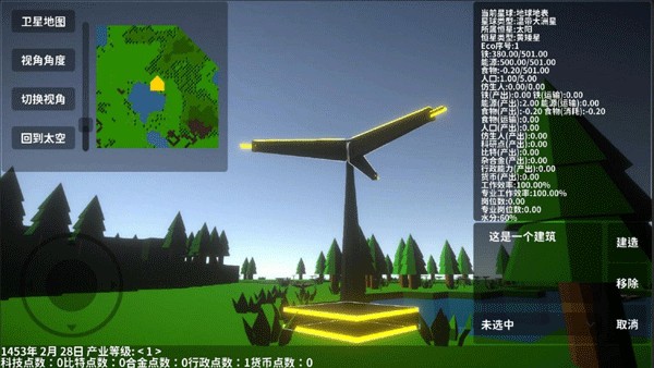 4、进入游戏后,界面如图所示,玩家需要在这颗星球上开展矿石开采、建筑建造等活动,并借助合理的经营策略推动整个星球的发展。