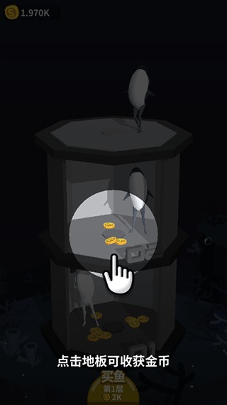 1、玩家得花费金币来购买鱼,两条第一代鱼可以繁殖出第二代鱼。