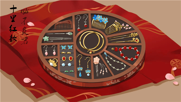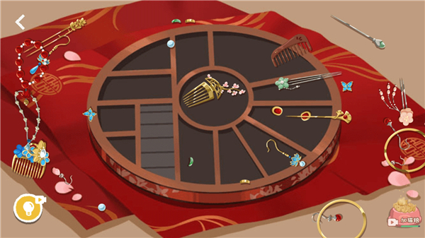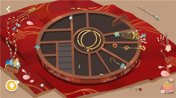 1、玩家进入十里红妆关卡后,会看到各式各样的首饰,需要做的就是把这些首饰放置到正确的位置上。