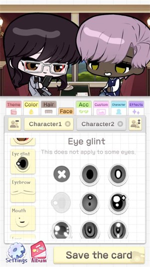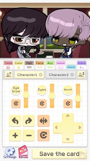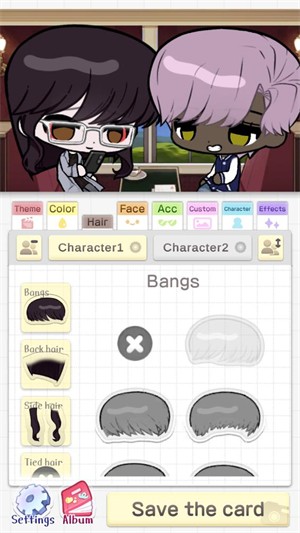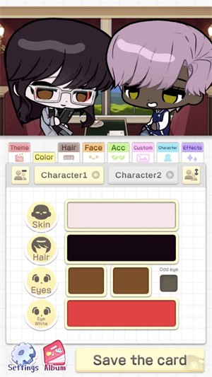 2、确定主题后,点击【character1】或【character2】,分别给两个角色更换装饰,塑造个性化形象。