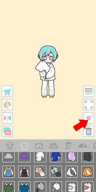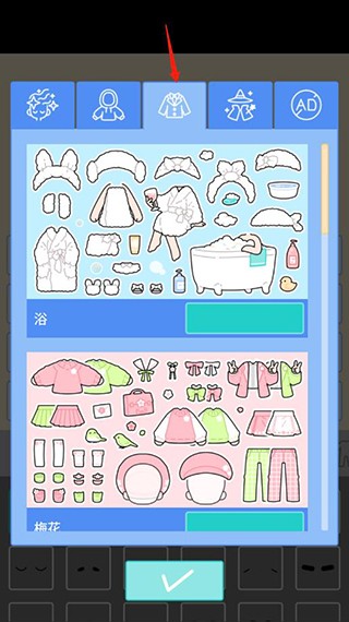 3、然后点击屏幕右侧第三个按钮(确保在点击前保存好当前搭配,避免丢失数据),接着点击勾号确认。