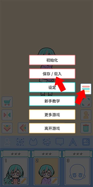 1、首先搭配好喜欢的服装后,点击右上角按钮,再选择“保存载入”选项。