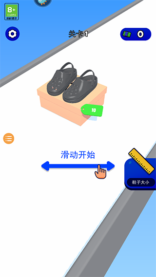 1、玩家进入《鞋子进化论》游戏后,通过左右滑动屏幕即可开启游戏。